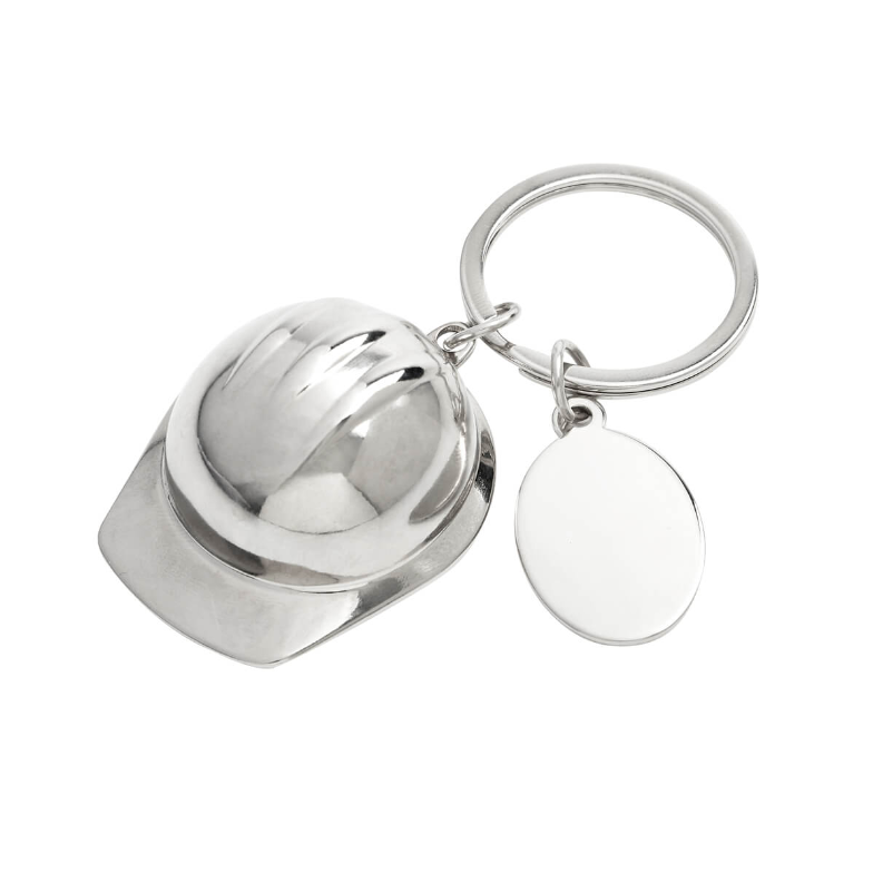 Llavero metálico con diseño en forma de casco.